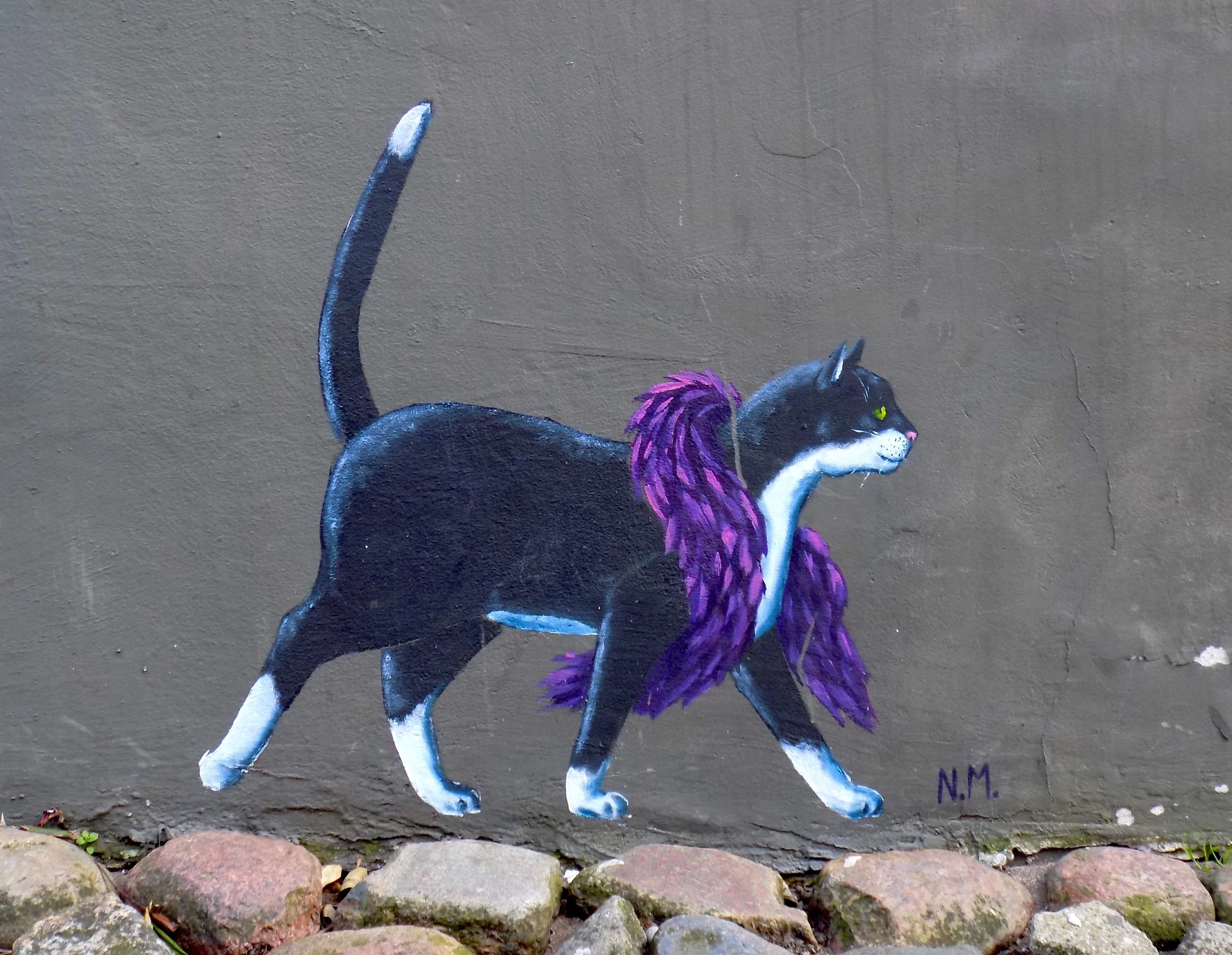 Seit 2016 male ich in der Flensburger Norderstraße Katzen an verschiedenste Hauswände und habe damit eine Straße zu einer freien Galerie umfunktioniert. Die Motive reagieren auf ihre Umgebung und fügen sich bewusst in das bestehende Stadtbild ein.